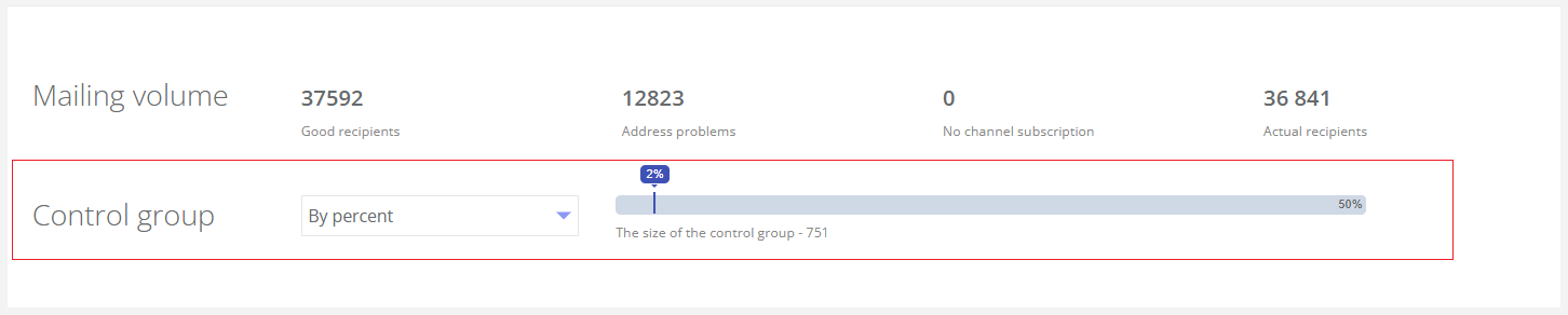This mechanism allows you to isolate a small subset—known as the control group—from the target communication segment. Typically, this represents 5–10% of the segment size. This control group does not receive the communication, yet the platform calculates the same metrics for them as it does for the main group that received the communication.