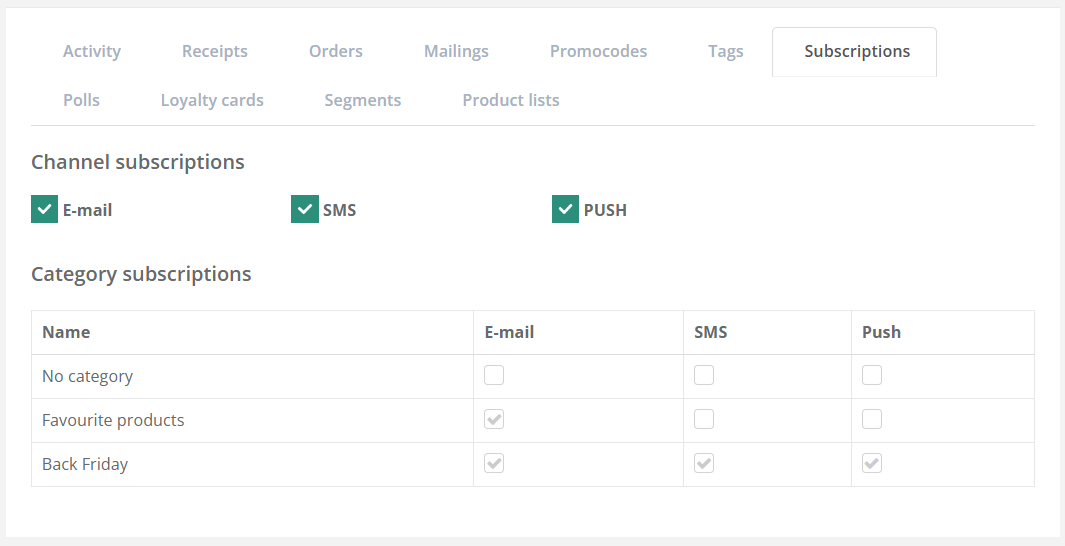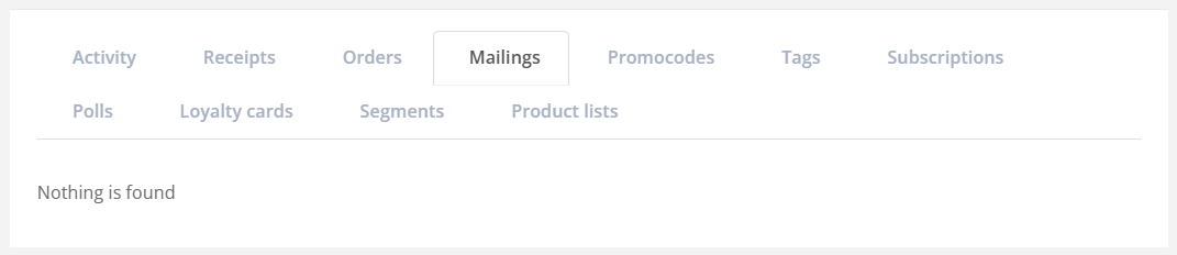 Information about all types of customer activity is displayed in the Activity tab: 1. Participation in mailings: