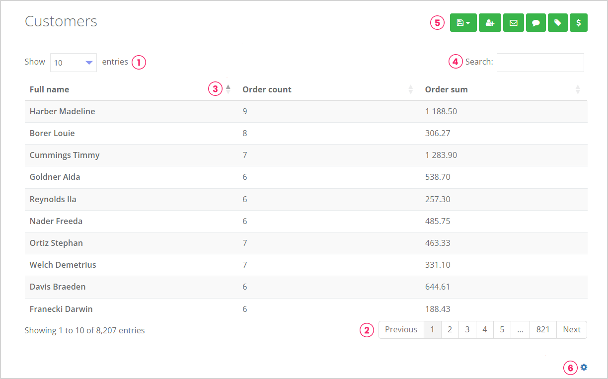 The list displays all customers from specified segment and calculates segment metrics so you can evaluate the selected audience.