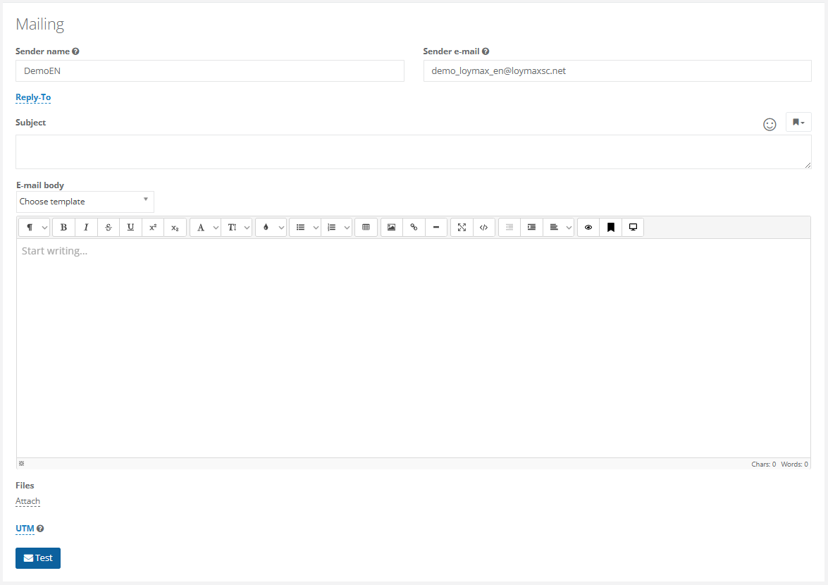 • If needed, you can add a UTM parameter to track the mass messaging online. If a UTM parameter is specified, it will be appended to all links in the email.