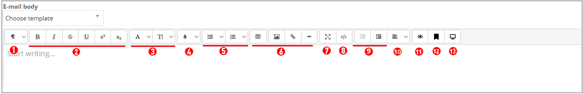 The system includes a block email editor for streamlined work with email mass messagings. To enable it, contact Technical Support.