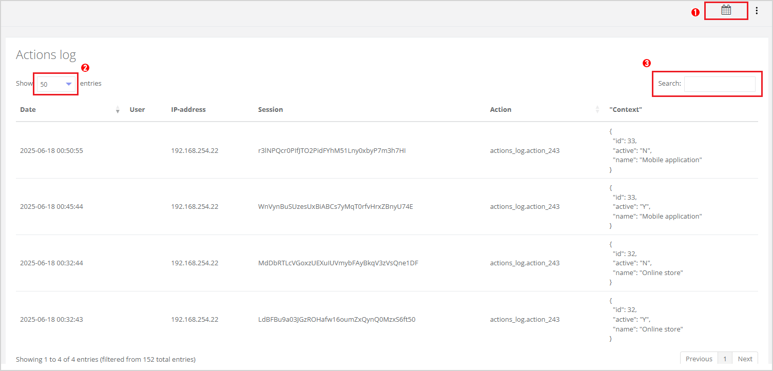 — choose the number of records to display (10, 50, or 100) from the dropdown list;