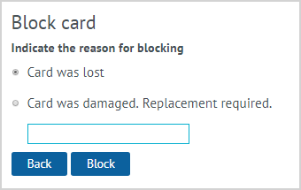 Card blocking is required in case of loss or damage with subsequent replacement with a new card.