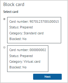 Card blocking is required in case of loss or damage with subsequent replacement with a new one