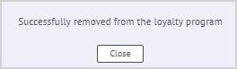| 4. In case of successful completion of the process of removing of the Member from the LP, a message about this appears on the agent’s screen. The agent clicks Close. |